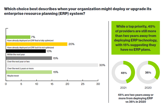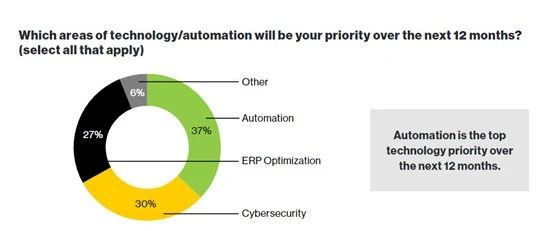 37%受访者表示,在接下来的12个月,RPA、AI等自动化技术将成为医院应用的重点;